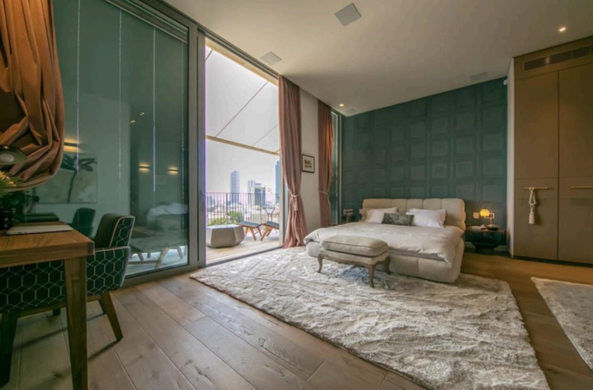 This full-floor 240 m² residence features a spacious living area, a custom-designed kitchen with central island, a luxurious master suite, and two additional bedrooms. Floor-to-ceiling windows open to several private terraces, filling the home with natural light throughout the day.
